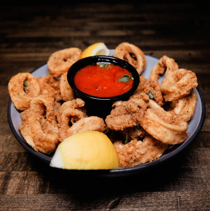 Crispy lightly breaded Calamari, served with our home made marinara sauce.
